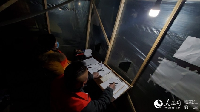 工作条件虽然艰苦,但工作人员依然深夜坚守。韩婷澎 摄