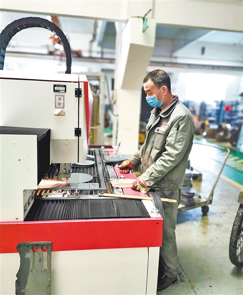 包头稀土高新区,长安永磁电机有限公司工人在操作激光切割。 (资料图片)