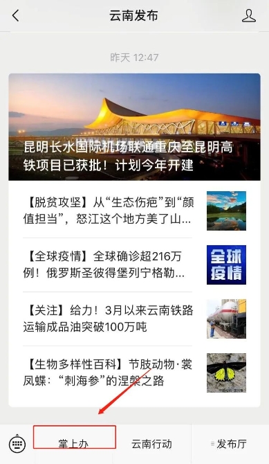 进入“云南发布”微信公众号主页