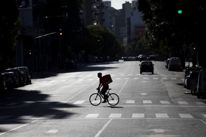 4月8日,阿根廷布宜诺斯艾利斯街头的车辆和行人明显减少。新华社发(马丁·萨巴拉摄)