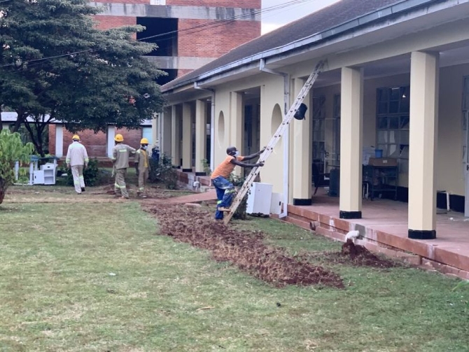 3月28日,在津巴布韦首都哈拉雷的威尔金斯医院,工人们正在施工。(新华社发)
