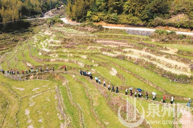 徒步活动从龙浔镇的高阳村金城桥出发,沿“瓷帮古道”一路经羊广岭窑、高洋铺、高洋塘、草垵,进入三班镇锦山村的湖揙雨亭、大路下古驿站,一直到与永春剧头铺交界的虎豹关,全程近8公里。