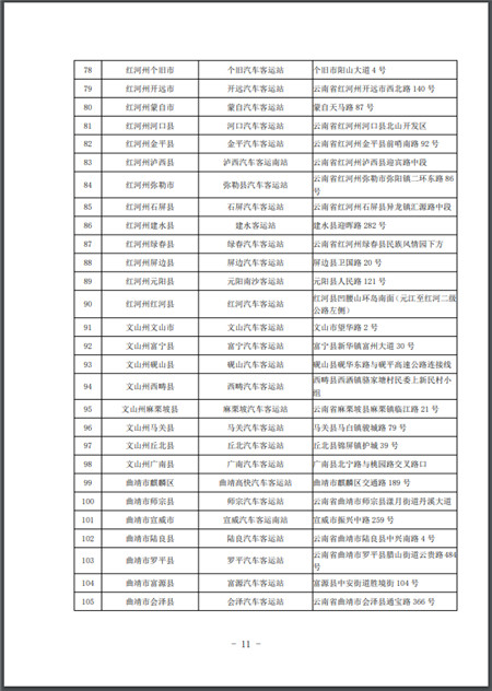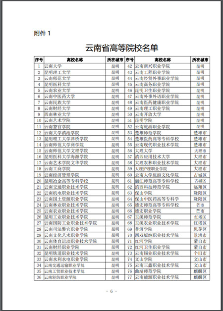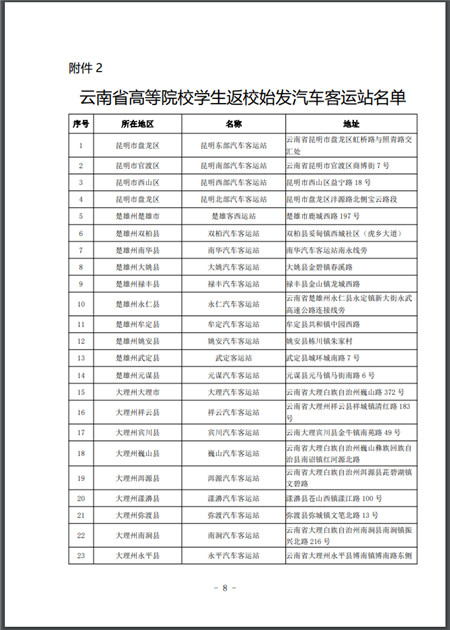 1.全省15个州、市(昆明除外),各县、市、区所在地至昆明各高等院校的返校直通车。