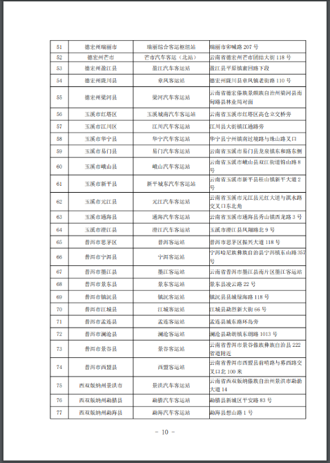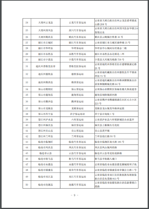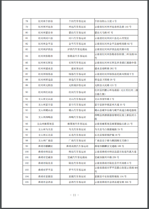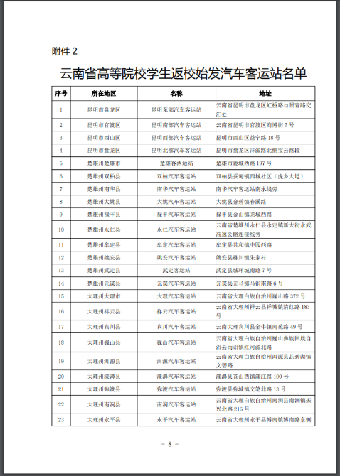 1.全省15个州、市(昆明除外),各县、市、区所在地至昆明各高等院校的返校直通车。