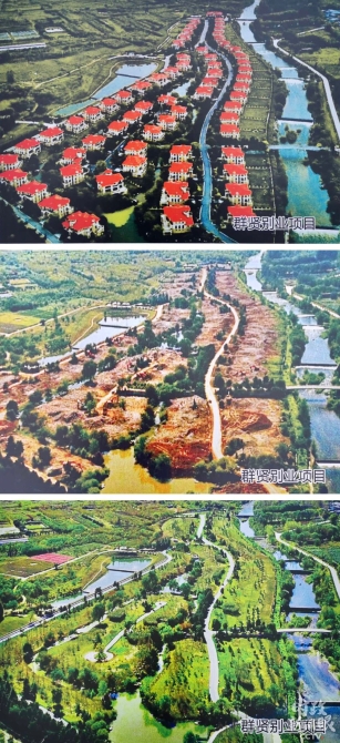 △违建别墅拆除前、中、后对比图。