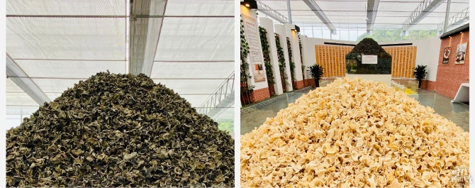 △柞水黑木耳(左)早在明清时期就有种植历史,被誉为“素中之王”;玉木耳(右)是由吉林农业大学选育的食用菌新品种,圆边、小碗、无筋、肉厚。(总台央视记者彭汉明拍摄)