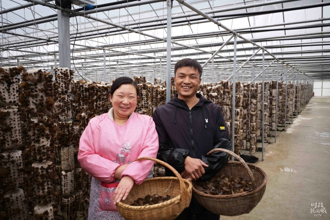 △“万山丛树多,土人伐木生耳。近耳收买成包,水陆运至襄汉,作郧耳出售,价倍川耳。”柞水人明清时期就从事木耳生产,并销往两湖一带。这是种植户肖青松、何小燕夫妇。(总台央视记者王哈男拍摄)