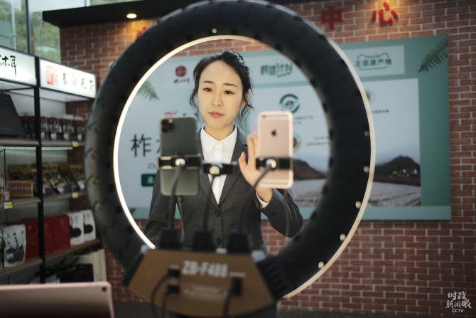 △这位正在通过网络直播“带货”的女孩叫李旭瑛。电商直播极大带动了柞水县农产品销售。(总台央视记者彭汉明拍摄)