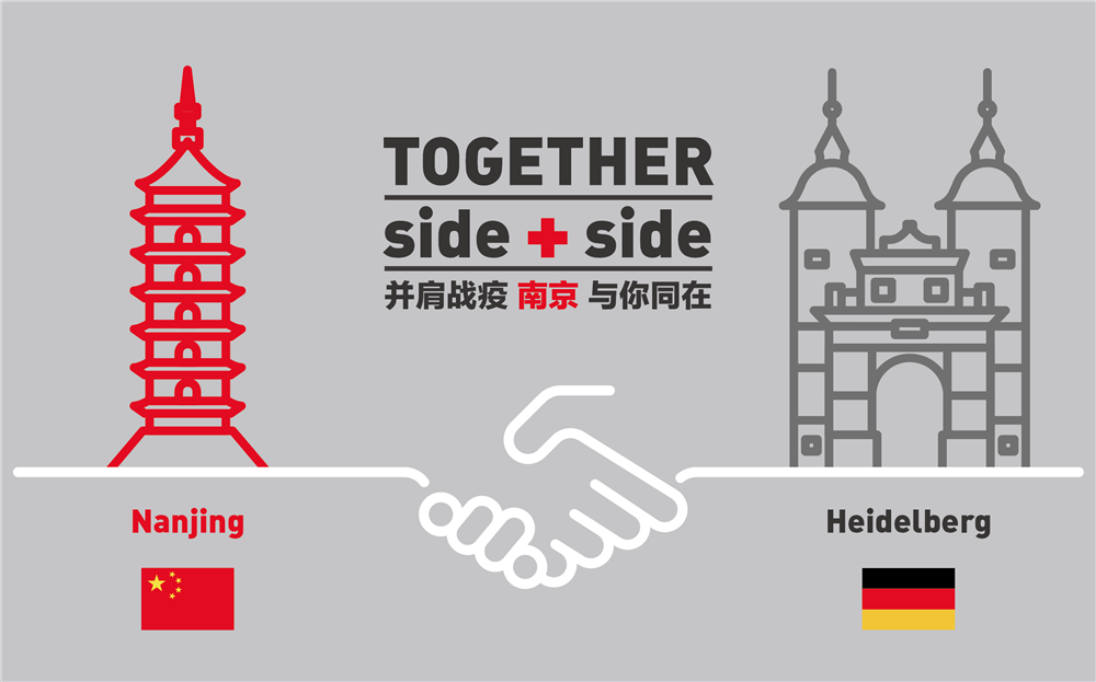 4月17日,一批抗“疫”物资从南京飞抵德国柏林,然后被送往海德堡。捐赠物资清单上,受赠方一栏填写着“托马斯•拉贝”“海德堡大学医学院”等。中德两国国旗上方,南京大报恩寺琉璃塔和海德堡古桥巍然耸立,两只大手紧紧相握。