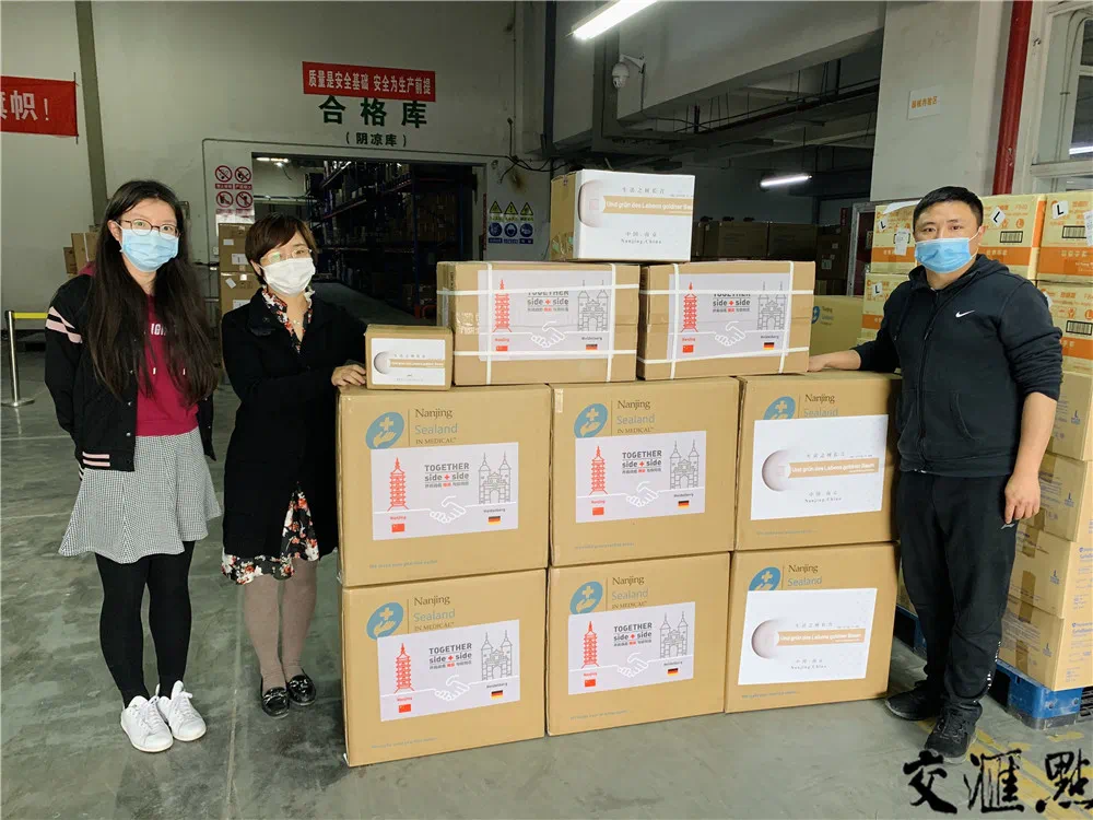 10多天来,南京市政府外事办公室争分夺秒。在两地来往航班十分紧张的情况下,他们积极沟通,联系江苏赴德援助包机,打通了物流运输渠道,终于把南京人的这份心意在短时间内送达。