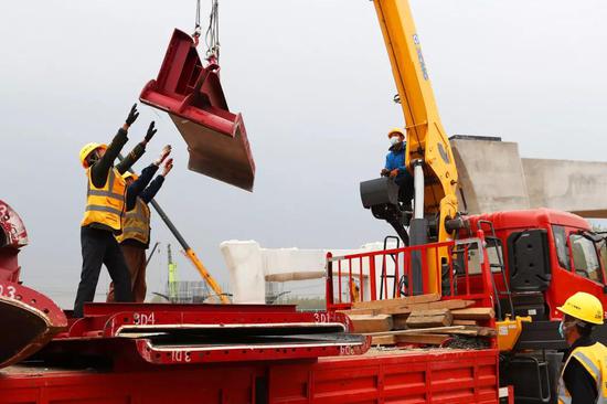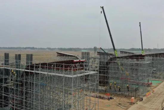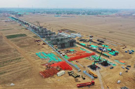 中交一公局集团在京雄高速兰沟洼特大桥建设工地施工