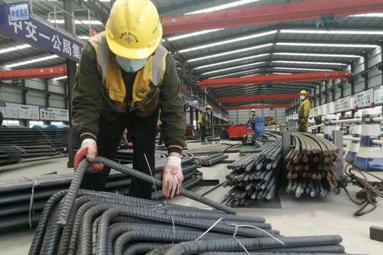钢筋加工厂里,工人正在专心工作。 王美一 供图