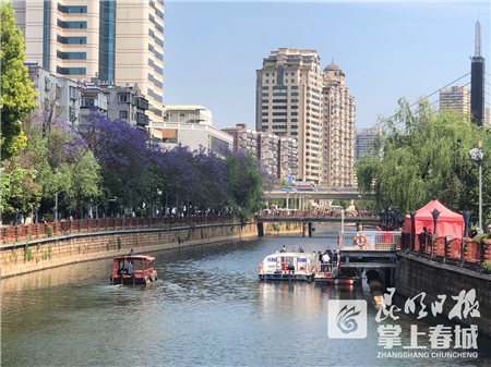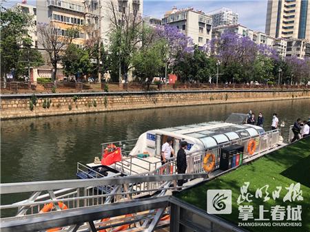 此次恢复航行的盘龙江河段,河水清澈,两岸绿树成荫,沿江还有不少紫色的蓝花楹正值花期,优美的风景十分养眼。“沿途风景很好,船也很平稳,20块钱的票价还是值得的,就是航线能更长一些就好了。”一位市民下船以后对记者说。