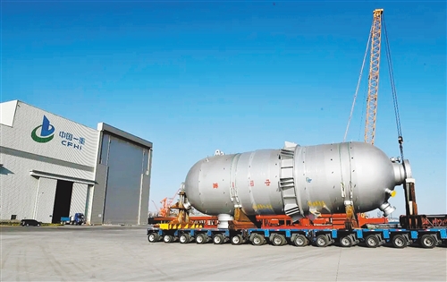 近日,中国一重大连核电石化公司承制的浙江逸盛锻焊加氢反应器套容器设备顺利完成制造任务。 (本报记者 苏大鹏供图)