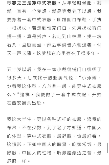 我想这衫子穿在身上,既是对母亲的敬意和谢意,也是我对中国古文化的一种景仰。