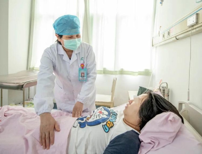 产科主任周洁琼给产妇做检查