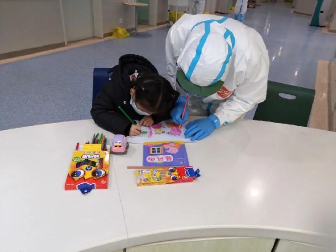 则在防护服上画了卡通画