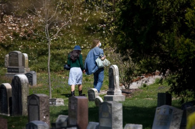 4月19日,人们走在美国纽约一座墓园里。美国约翰斯·霍普金斯大学19日发布的新冠疫情最新统计数据显示,截至美国东部时间19日15时(北京时间20日3时),美国累计新冠死亡病例超过4万例,达到40585例。新华社发(郭克摄)