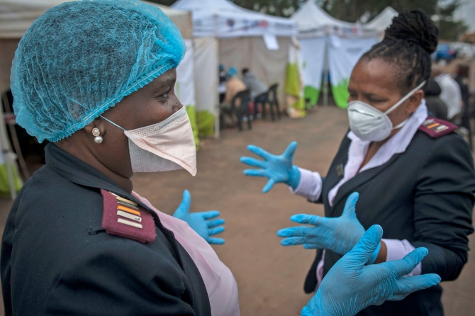 4月8日,在南非约翰内斯堡,医护人员在新冠病毒检测站工作。随着疫情加剧,非洲多国加大对新冠疫情的防控力度。受新冠疫情影响,南非已经在全国范围内实施“封城”措施,并在全国范围内投入了多个简易移动检测站,加大检测力度。新华社发(希拉兹摄)