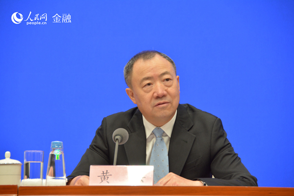 图为中国银保监会副主席黄洪发言。(人民网记者李彤 摄)