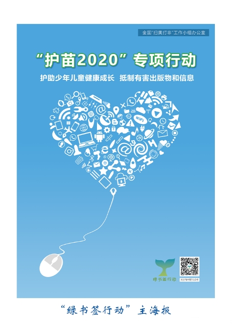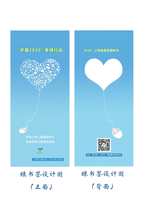 为开展好“护苗2020”专项行动,全国“扫黄打非”办公室将于4月20日起在全国范围内大力开展2020年“绿书签行动”系列宣传行动,活动主题是“护助少年儿童健康成长,抵制有害出版物和信息”。活动期间,各地将面向社会广泛开展丰富多彩的系列宣传教育活动。今日,全国“扫黄打非”办公室对外发布2020年“绿书签行动”宣传海报、书签设计图样。