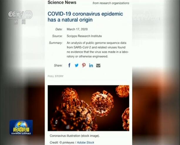 世界卫生组织发言人法德拉·沙伊布21日在例行记者会上表示,当前媒体和社交平台上流传着一些有关新冠病毒起源的谬论和阴谋论。所有已知证据都表明新冠病毒源自动物。