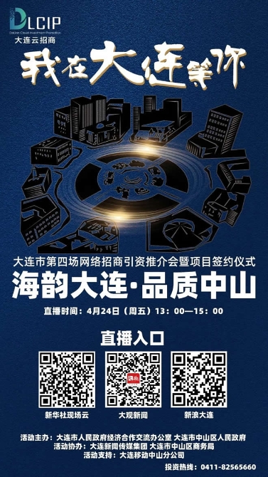 4月24日13:00—15:00,2020年大连市第四场网络招商引资推介会暨项目签约仪式——海韵大连•品质中山将华丽登场。