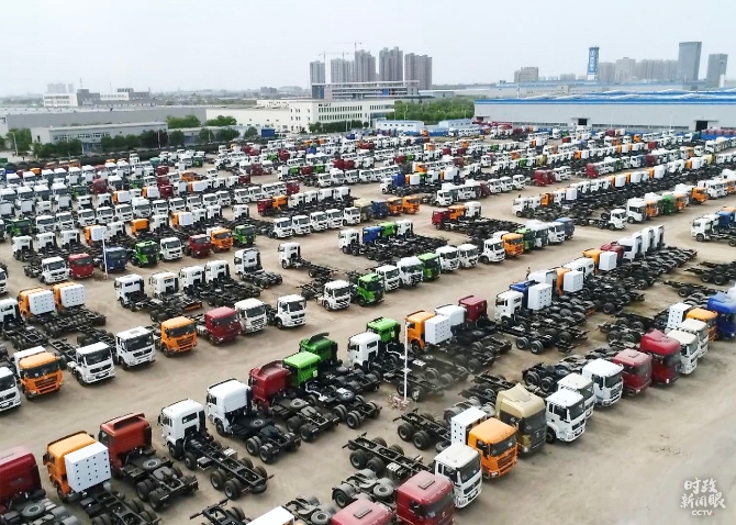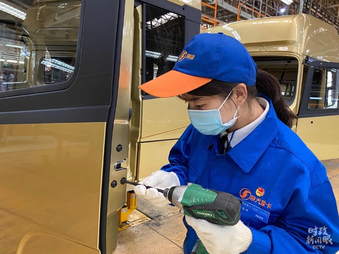 △在常态化疫情防控的前提下,陕汽于2月14日复工,目前复工率已达100%,产能全面恢复。(总台央视记者杨立峰、杨松涛拍摄)
