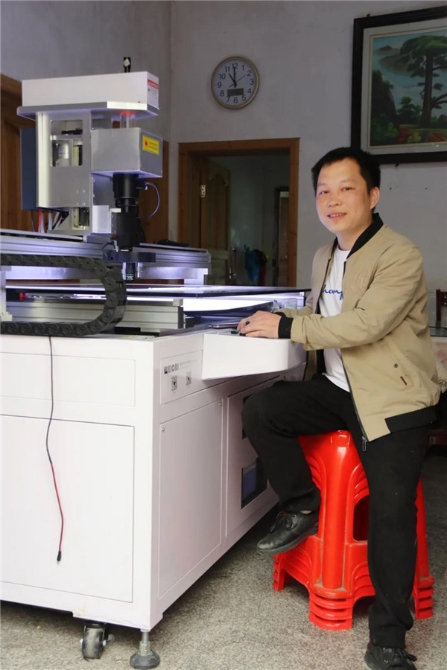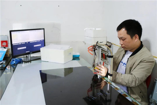 脱贫之后的李昌帆并没有止步不前,肯吃苦不服输的他想着如何才能靠双手致富。为了节省购买设备的成本,他自己查阅资料,组装了一台压屏机,有了压屏机,维修范围就大了很多,不再限于小订单。