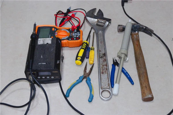 ▲李昌帆的第一代维修工具。木柄羊角锤、生锈的扳手和简易焊台等。