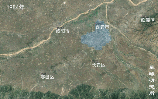 (从1984年-2016年西安城市的扩张,制图@张靖/星球研究所)