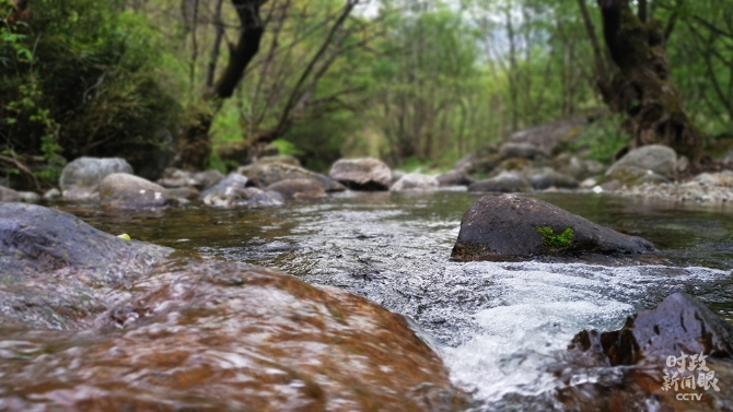 △秦岭牛背梁国家级自然保护区内幽谷碧潭,林荫葱茏,怪石嶙峋。(总台央视记者张晓鹏、李辉拍摄)