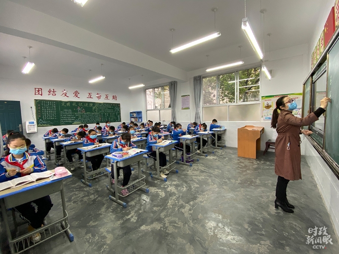 △老县镇中心小学五年级学生正在上课。(总台央视记者彭汉明拍摄)