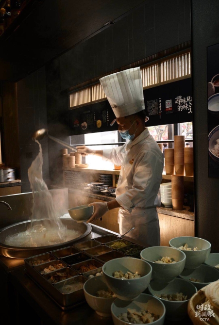 △大唐不夜城步行街多家店面恢复营业,特色美食色泽诱人。(总台央视记者王哈男拍摄)