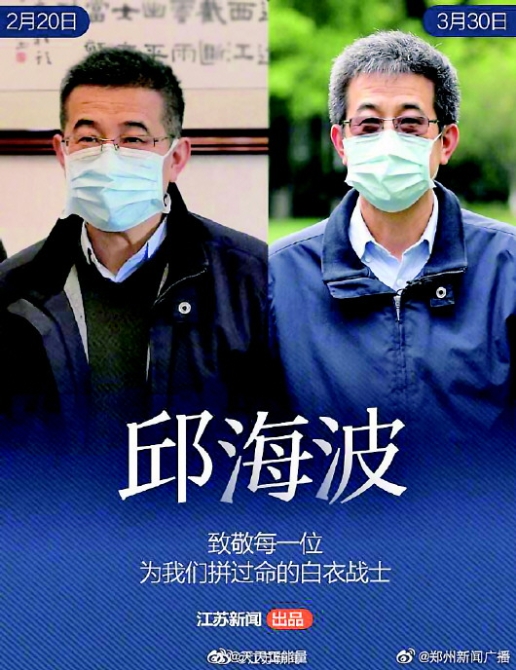 作为中央指导组专家组成员、国家卫健委专家组成员,东南大学附属中大医院党委副书记邱海波,从1月19日驰援湖北至今,已在前线奋战近百天。