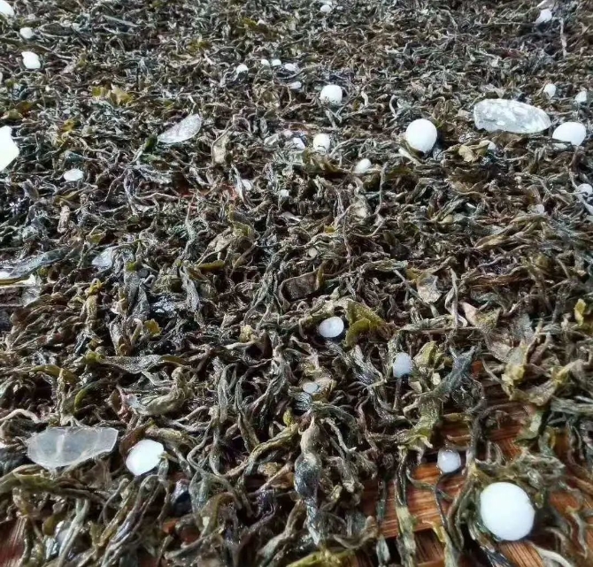 4月24日下午2点多,受局地强对流天气影响,勐海县多个乡镇普降大雨并伴有冰雹,其中勐混镇、勐遮镇一带冰雹较大,部分茶叶、秧苗受损。