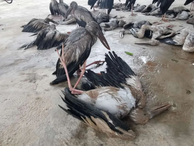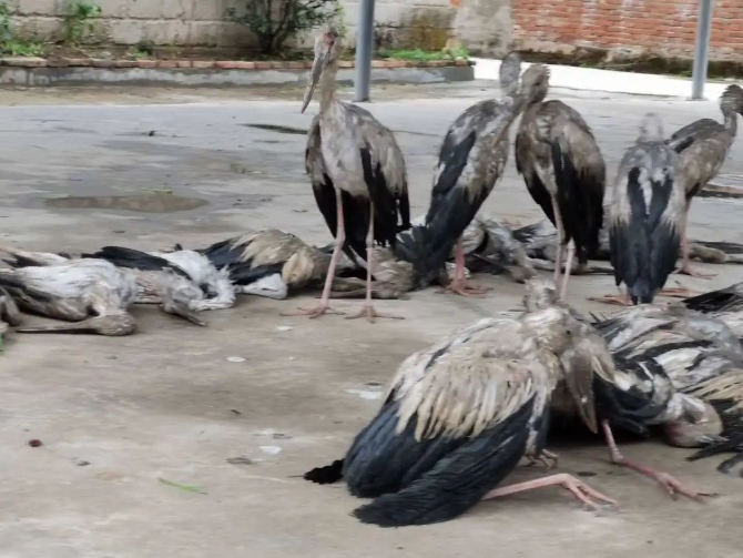 同时,勐海县融媒体中心记者从勐海县野生动植物保护站了解到,本次冰雹灾害除了部分农作物受损外,还造成大量栖息在勐混镇、勐遮镇一带的野生钳嘴鹳死亡,其中勐混镇辖区死亡19只,勐遮镇辖区死亡23只。目前勐海县野生动植物保护站工作人员正在对受伤的钳嘴鹳进行救治,对已经死亡的进行无害化处理。