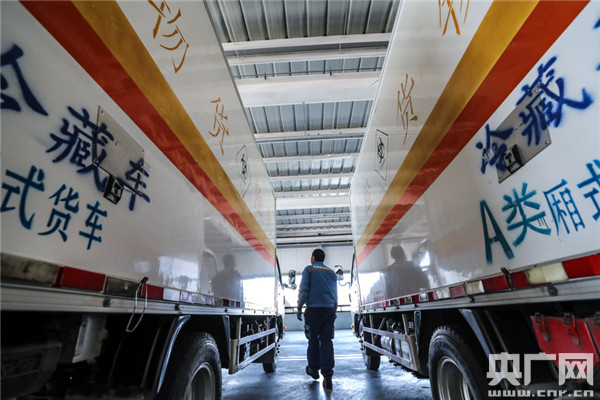 董金峰正在检查车况(央广网记者韩靖/摄)