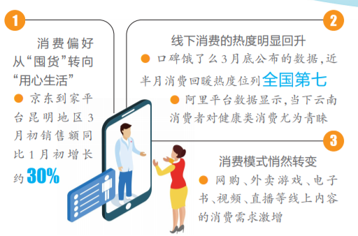 疫情影响着云南消费者的消费模式悄然转变,网购、外卖、游戏、电子书、视频、直播等线上内容的消费需求激增。线上消费场景迎来进一步的升级与普及,给买卖双方都带来了惊喜。