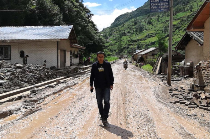 受疫情影响,公共交通停运,陈雪峰和分散在成都周边的其他三位扶贫工作队的同事只得拼车前往。雨后的山路泥泞蜿蜒,雾气缭绕,鲜有餐馆饭店,十几个小时的车程,他们渴了饿了就靠随身携带的泡面和干粮充饥。这一幕不由让他回忆起两年前刚刚来到这里时的场景……