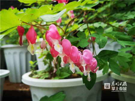 除了赏到荷包牡丹,金殿温室片区的3000余株月季开得正艳,市民可登高望远,在鸣凤山间寻找它们的芳踪。