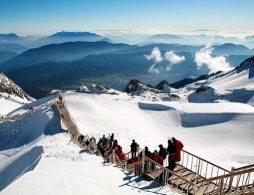 图为4月26日,游客在玉龙雪山景区赏雪。(新华网 丁凝 摄)