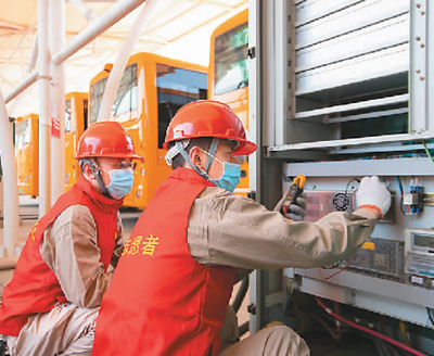 国家电网近日表示,2020年国家电网将在北京、江苏、湖南、青海等24个省、区、市新建7.8万个充电桩,预计可带动新能源汽车消费超过200亿元。图为工作人员在江苏泰兴市汽车客运站为公交汽车直流充电桩进行调试。 汤德宏摄(人民视觉) |