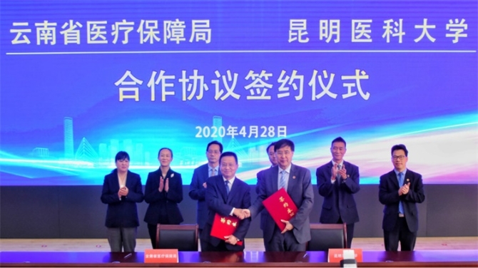 4月28日上午,云南省医疗保障局与昆明医科大学签署合作协议,共同组建云南省医疗保障改革发展研究中心,打造医保领域大数据和政策研究高端智库,并设立云南省医疗保障干部培训基地。