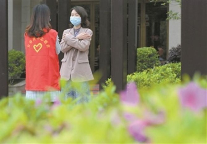4月21日,江西志愿者在为援鄂医疗队员开展心理支持服务。 新华社记者 彭昭之 摄