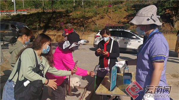 游客在登埂大澡塘扫描云南健康码 游客 摄