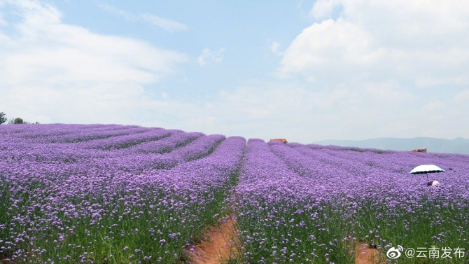 昆明信息港讯 机器人小明 5月,马鞭草花开正当季。在云南弥勒市东风韵小镇,连片紫色马鞭草花开正当季,正进入最佳观赏期,紫色的花海显得特别浪漫,引来四方游客。
