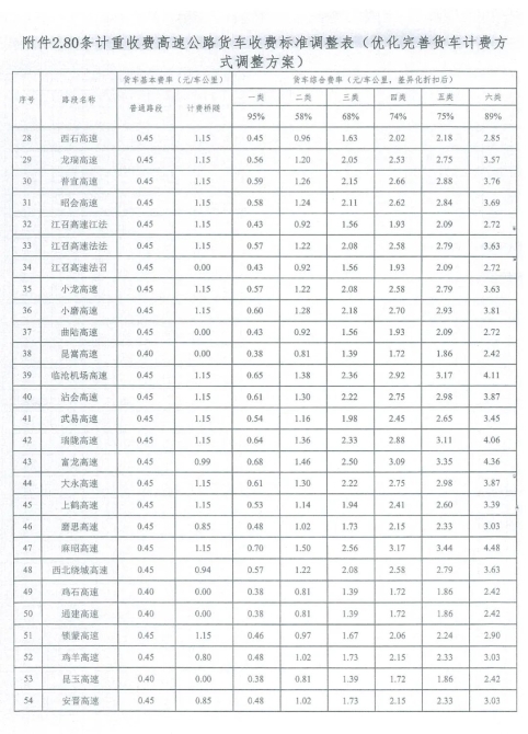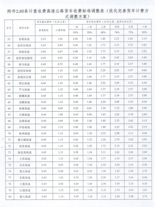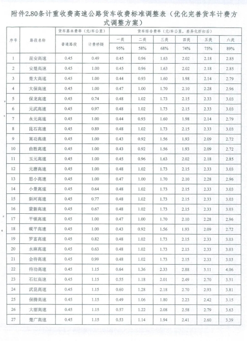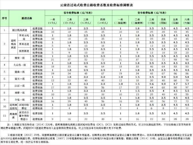 5月2日,云南省交通运输厅公布《云南省收费公路货车收费标准表》。
