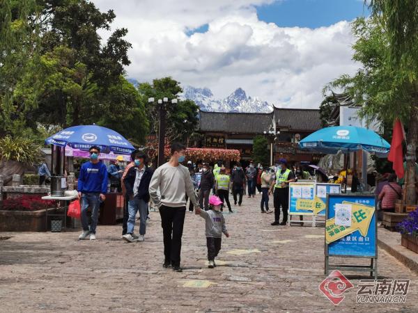 假日期间,丽江市各大景区均迎来了大量游客。丽江古城保护管理局工作人员介绍,丽江古城景区在假期到来前已提前发布公告,告知公众景区在“五一”期间继续实行预约参观游览,景区瞬时接待最大游客量限定为2.4万人,全天最大游客接待量限定为7.5万人,在达到最大承载限定时将停止接待游客,同时,开通了电话、“丽江古城景区”微信公众号、“一部手机游云南”等预约通道,提示游客提前1个工作日分时段预约,做到错峰出行、预约前往、健康扫码、间隔游览。