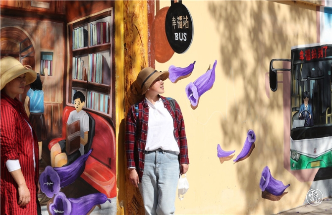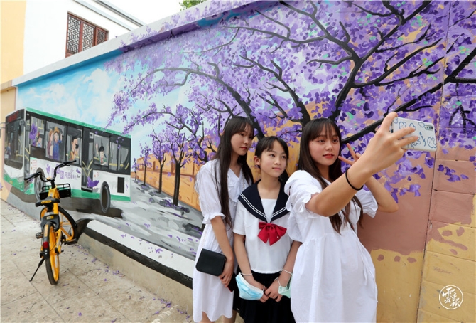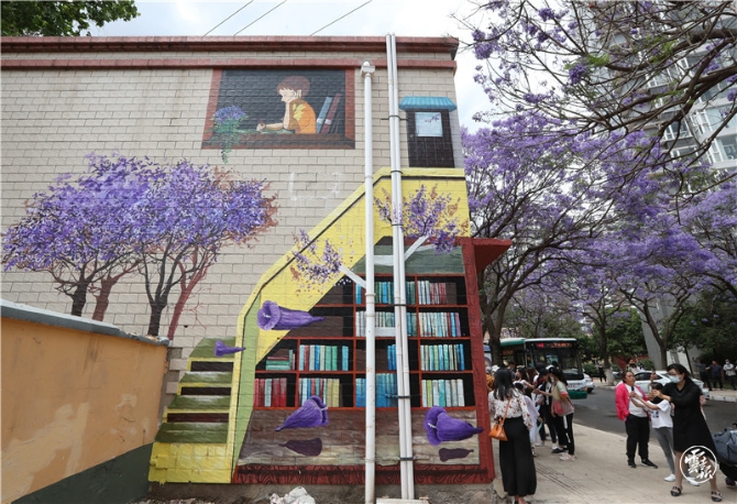 Beautiful murals added to the Jacaranda Avenue in Kunming